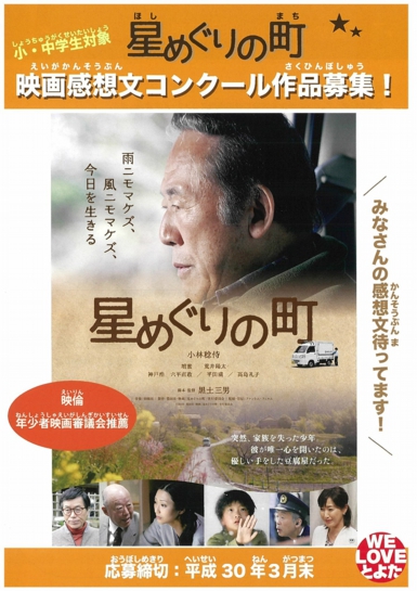 映画「星めぐりの町」を実現する会は、豊田市を舞台とした映画「星めぐりの町」の公開を記念して、小中学生を対象とした映画感想文コンクールを実施します。