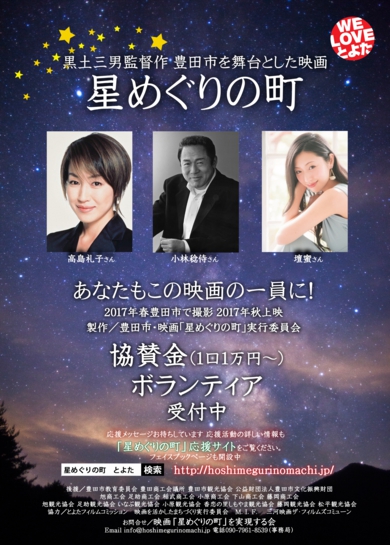 本サイトはこのまま掲載されますが、以後の「星めぐりの町」に関する最新情報、豊田の映画に関する情報は、「映画街人とよた」サイト等にて発信していきますので、よろしくお願いいたします。