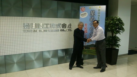 現在、豊田鉄工株式会社本社のロビーには星めぐりの町を応援するる看板が設置されています。